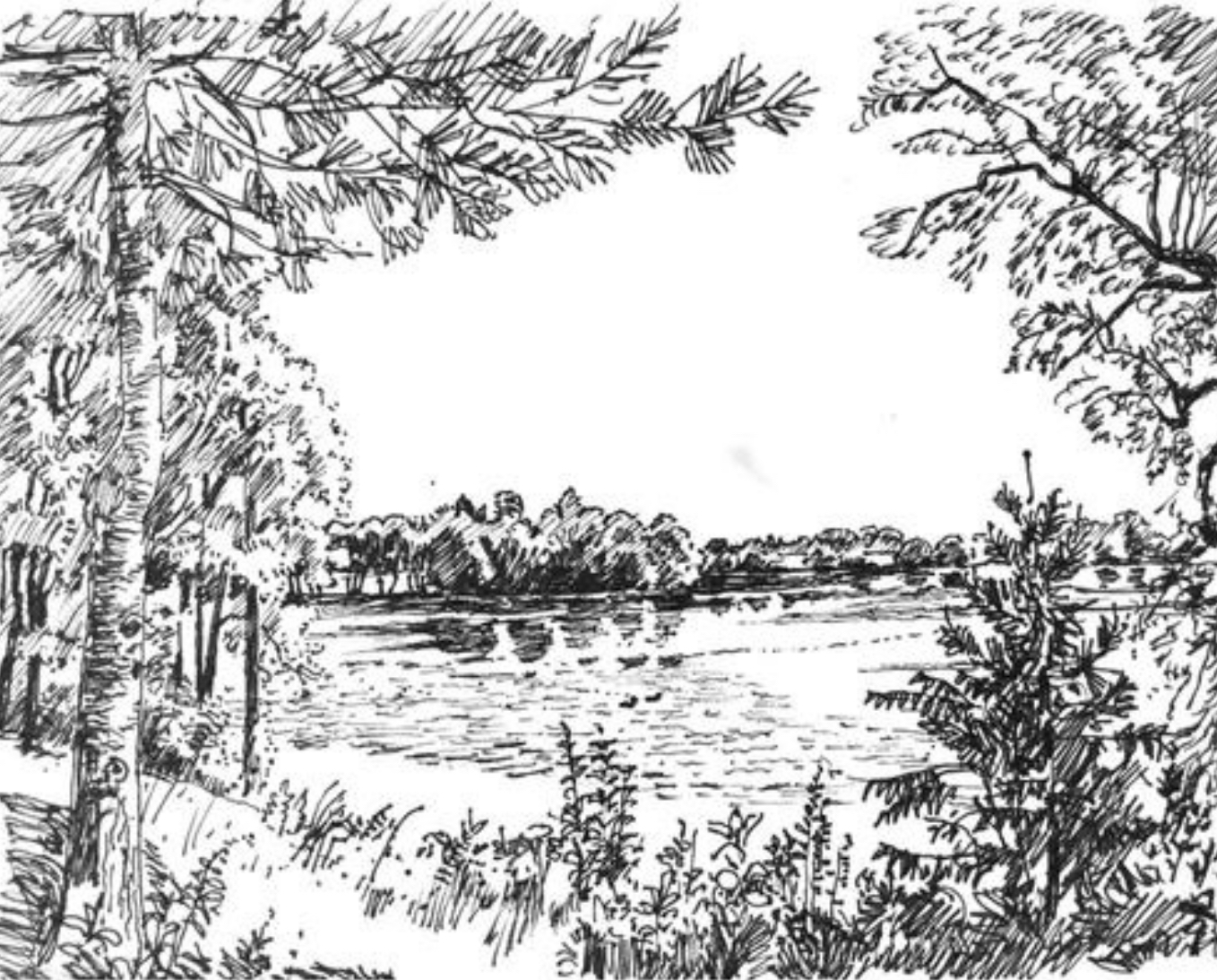 Tall green trees all around the lake, the sun just beggining to drift down behind them. When was the last time he’d been out in a forest like this? Ten years? Twenty?